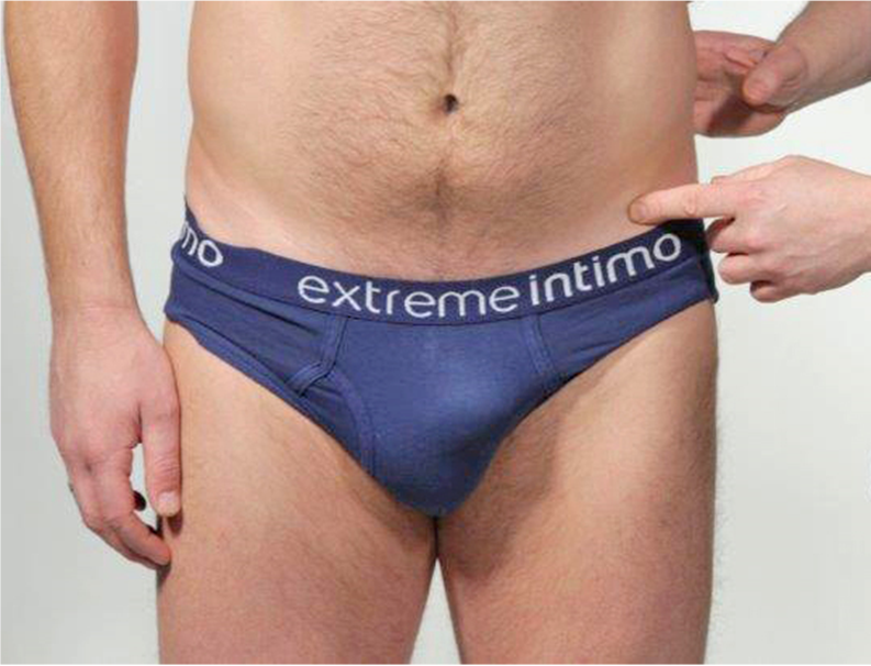Undersøkelsen avsluttes med palpasjon over symfysen med tanke på smerter. Deretter palperes tuberculum pubicum som feste for hoftens adduktormuskulatur og tuber ischiadicum som er festet for hamstringsmuskulaturen.