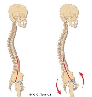 - Posterior bekkentilt kan medføre at kroppens tyngdepunkt flyttes fremover