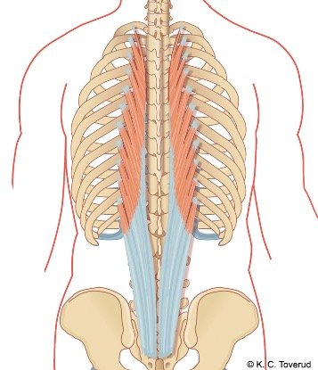 - Stabiliserende ryggmuskler: m. multifidus, m. erector spinae, m. quadratus lumborum.