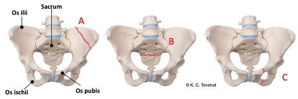 - C Brudd ramus superior/pubis/fremre eller ramus inferior/ischiadicus/bakre