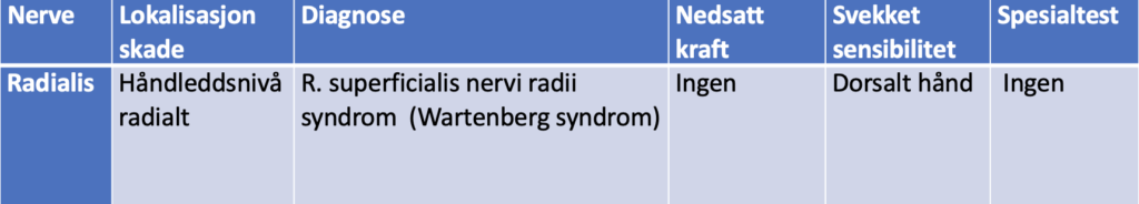 Nøkkeldiagnostikk, N. radialis