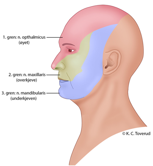 - Nevropatisk smerte i innervasjonsområdet for N. Trigeminus (N. ophthalmicus, N. maxillaris, N. mandibularis)