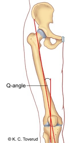 - Q-vinkel utenfor normalområdet er assosiert med utvikling av chondromalacia patella og risiko for patellaluksasjon