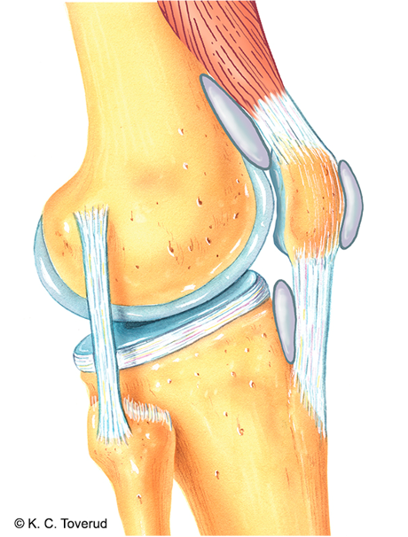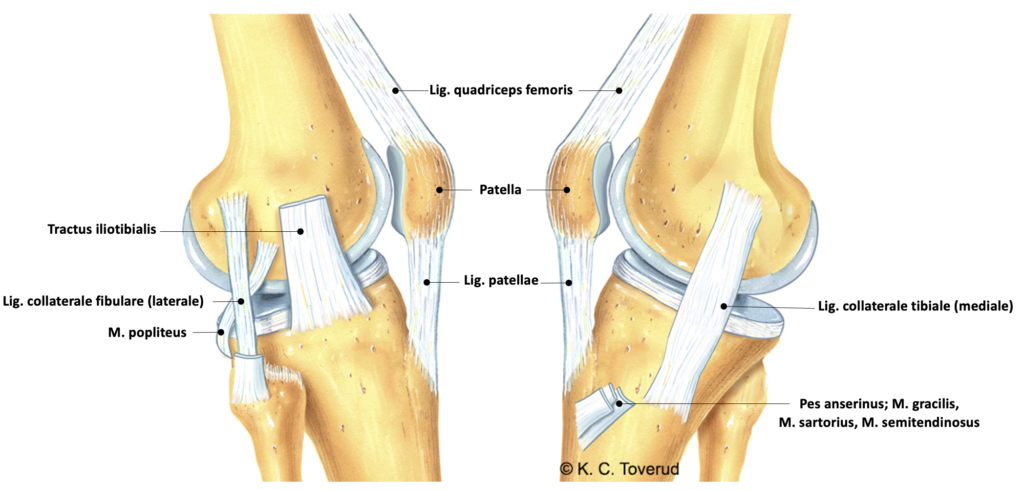 - Strakt kne: kapsel, korsbånd, m. popliteus.