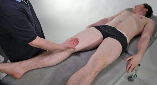 Dersom det foreligger normale bevegelsesutslag og smerter ved isometrisk ekstensjon i kneleddet må man tenke på tendinopati og/eller partielle rupturer i quadricepsmuskulatur rundt kneleddet, ved smerter ved isometrisk fleksjon må man tenke på skade i hamstringsmuskulatur.