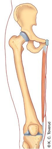 Traktus iliotibialis med bursa, lokalisasjon løperkne «Runner’s knee»