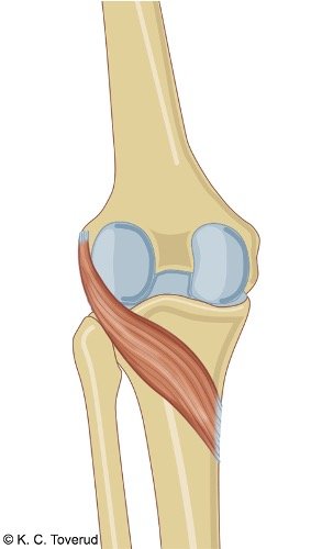 - Strakt kne: kapsel, korsbånd, m. popliteus.