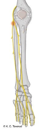 • Nerven passerer rett bak caput fibulae, 3 cm distalt for toppen av fibulahodet.