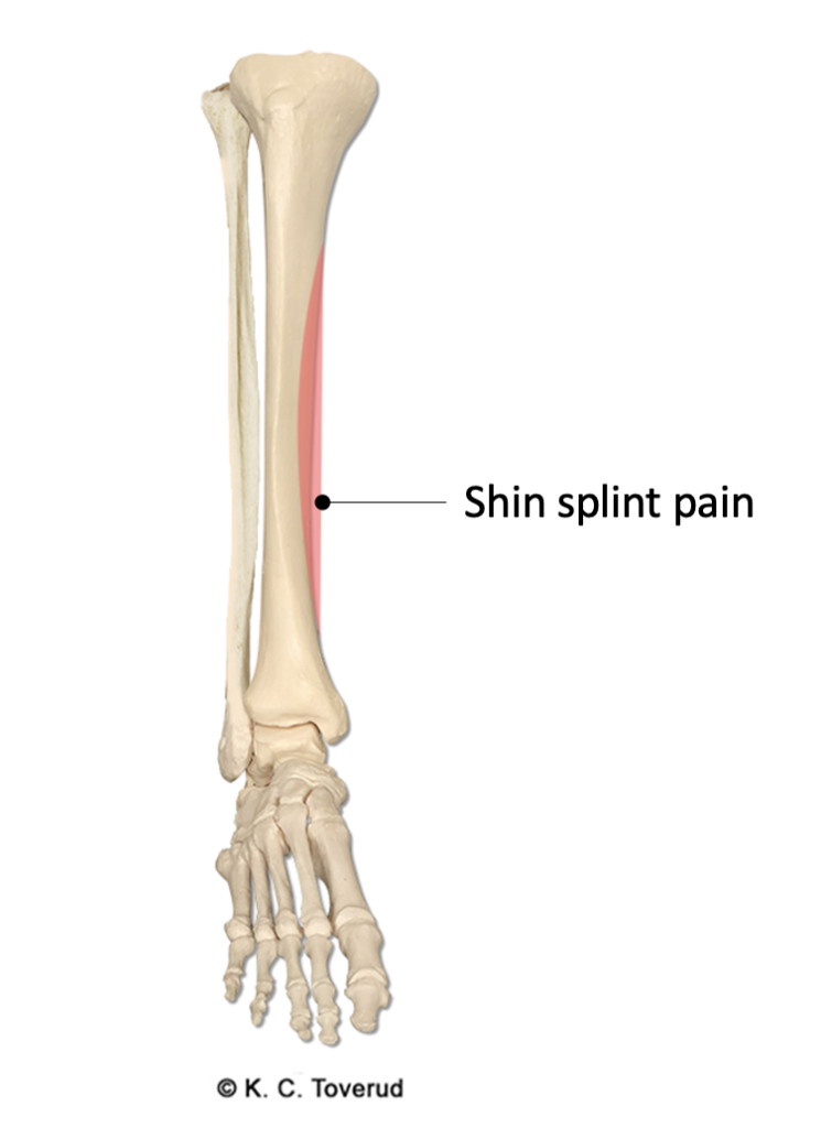 - Inflammasjon i muskel, sene og periost langs mediale kant av tibia