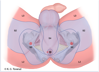 - S4,S5: Perianalt opp til 1 cm lateralt fra overgangen mellom tarmslimhinne og hud