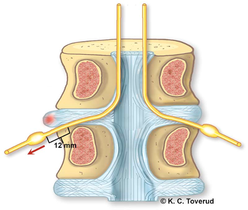 Ved nervestrekktest beveger spinalnerven seg 12 mm