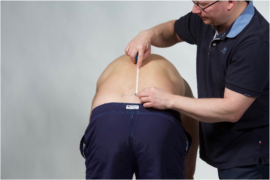 - Original test; Setter et merke 10 cm opp, ved fleksjon forover økning til 15 cm