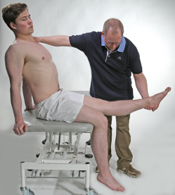 Ved Slump test sitter asienten på benk med bena hengende utenfor. Flekterer først i ryggen, deretter passiv full strekk i kneleddet. Registerer om det kommer strålesmerter i benet.