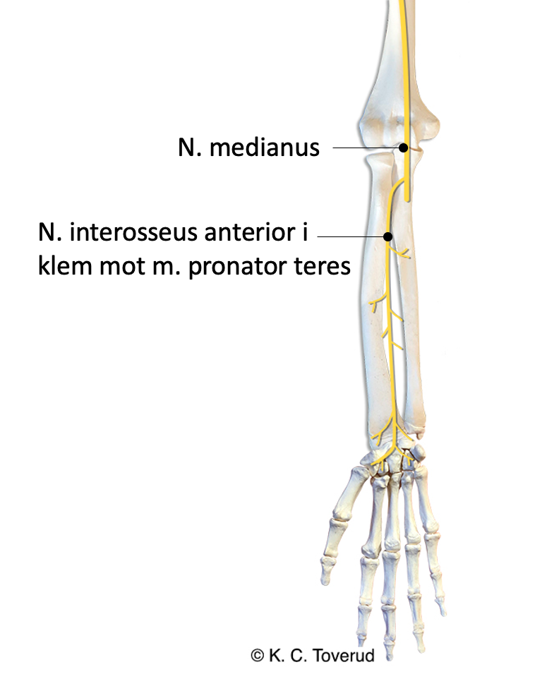 - Sjelden nerveskaden som kan sees ved nevritt, brudd i underarmen og ved trykk mot nerven i M. pronator teres