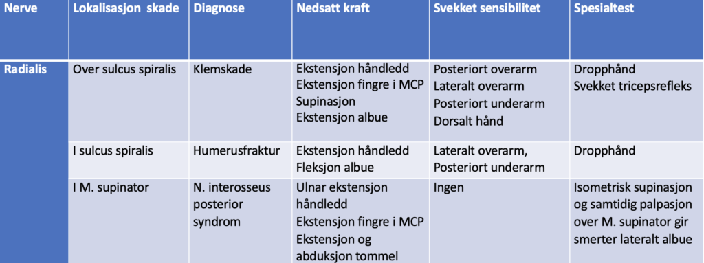 Nøkkeldiagnostikk, N. radialis