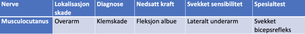 Nøkkeldiagnostikk, N. musculocutanus