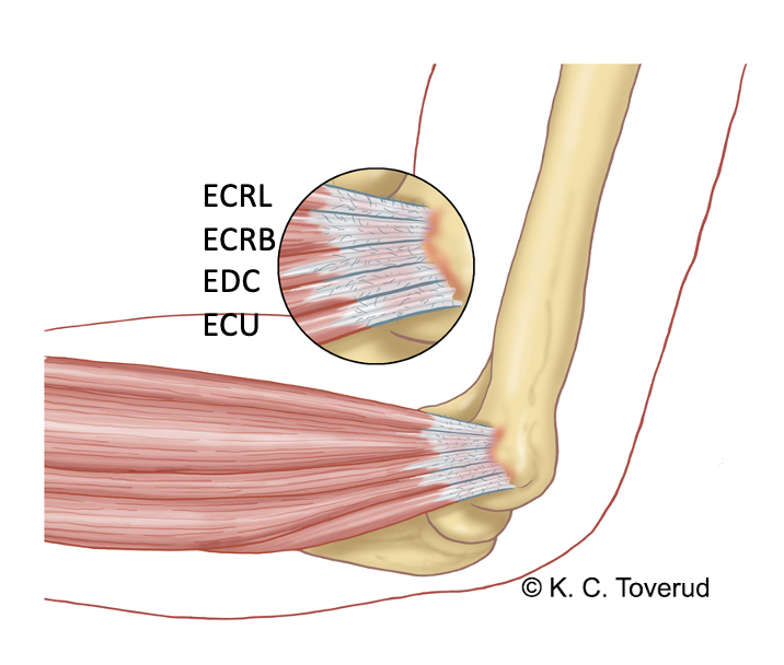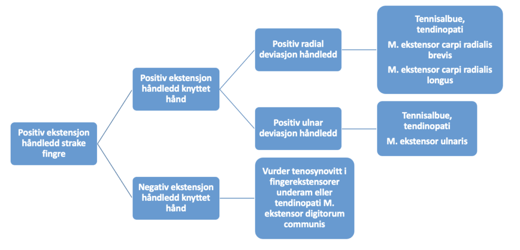 - ECRB undersøkes med palpasjon over festet og testes med strak albueledd og ekstensjon 3. metacarp