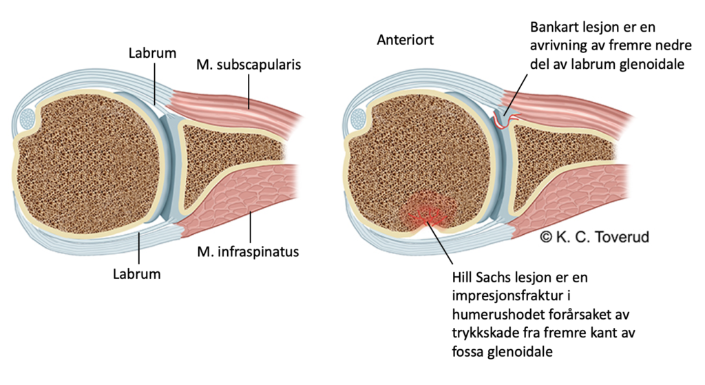 - Hill-Sachs lesjon er definert som et impresjonsbrudd i leddhodet, sees i 35-40 % av tilfellene ved fremre luksasjon
