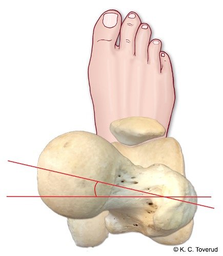 Normalt har kneleddet en knekk på 5–10 grader, såkalt «fysiologisk valgus»