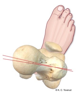 Kan gi skjevstilling som svarer til beinstillingen hos kalvbeinte (Genu valgum)