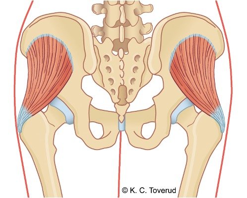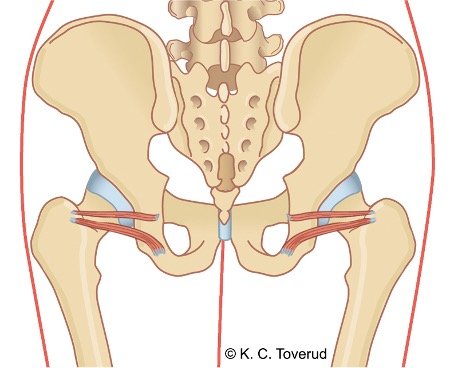 - Muskler: gluteus medius/minimus, TFL, psoas/iliacus, adductores.