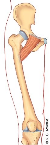 - Muskler: piriformis, gemelli, obturatorii, quadratus femoris.