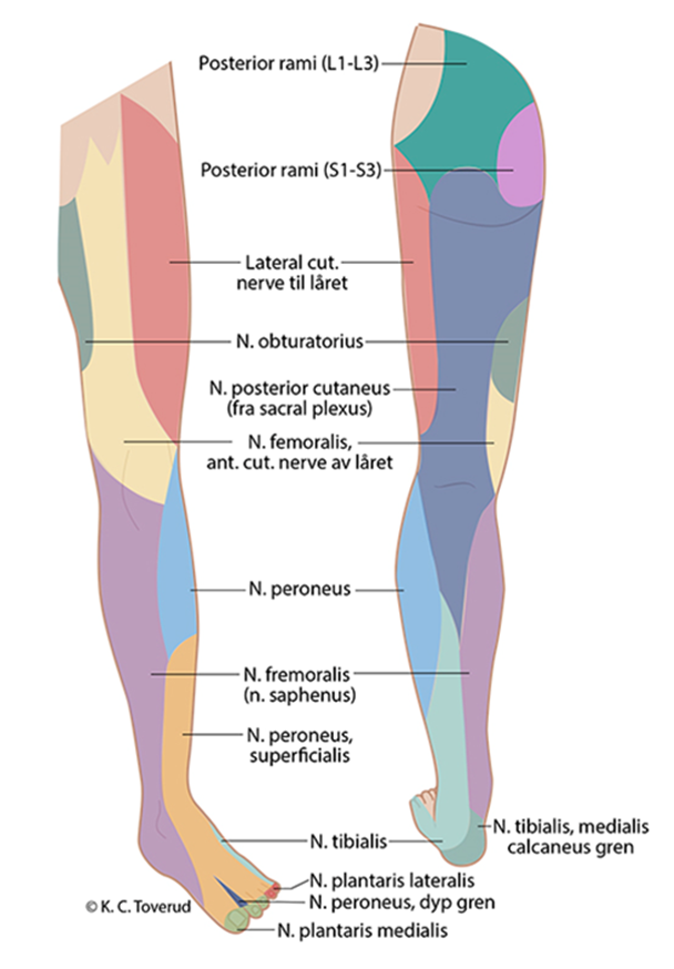 - Tap av følelse og nummenhet på utsiden/fremsiden av låret